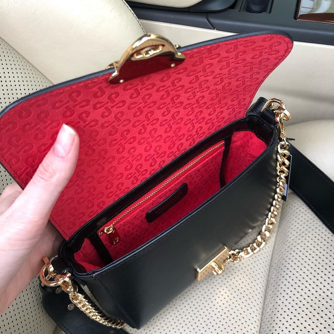 Black genuine leather woman shoulder bag from ukrainian designer Katerina Fox. Fashionable and elegant modern bag KF for bright girls and women. This bag is able to attract attention and highlight your exquisite taste. Inside the bag is one large compartment and a convenient zippered pocket for small items, closes the bag on the clasp. The bag is comfortable to wear on the shoulder or across the shoulder. If you are planning to buy excellent leather bag at an affordable price, this handbag is the right choice!