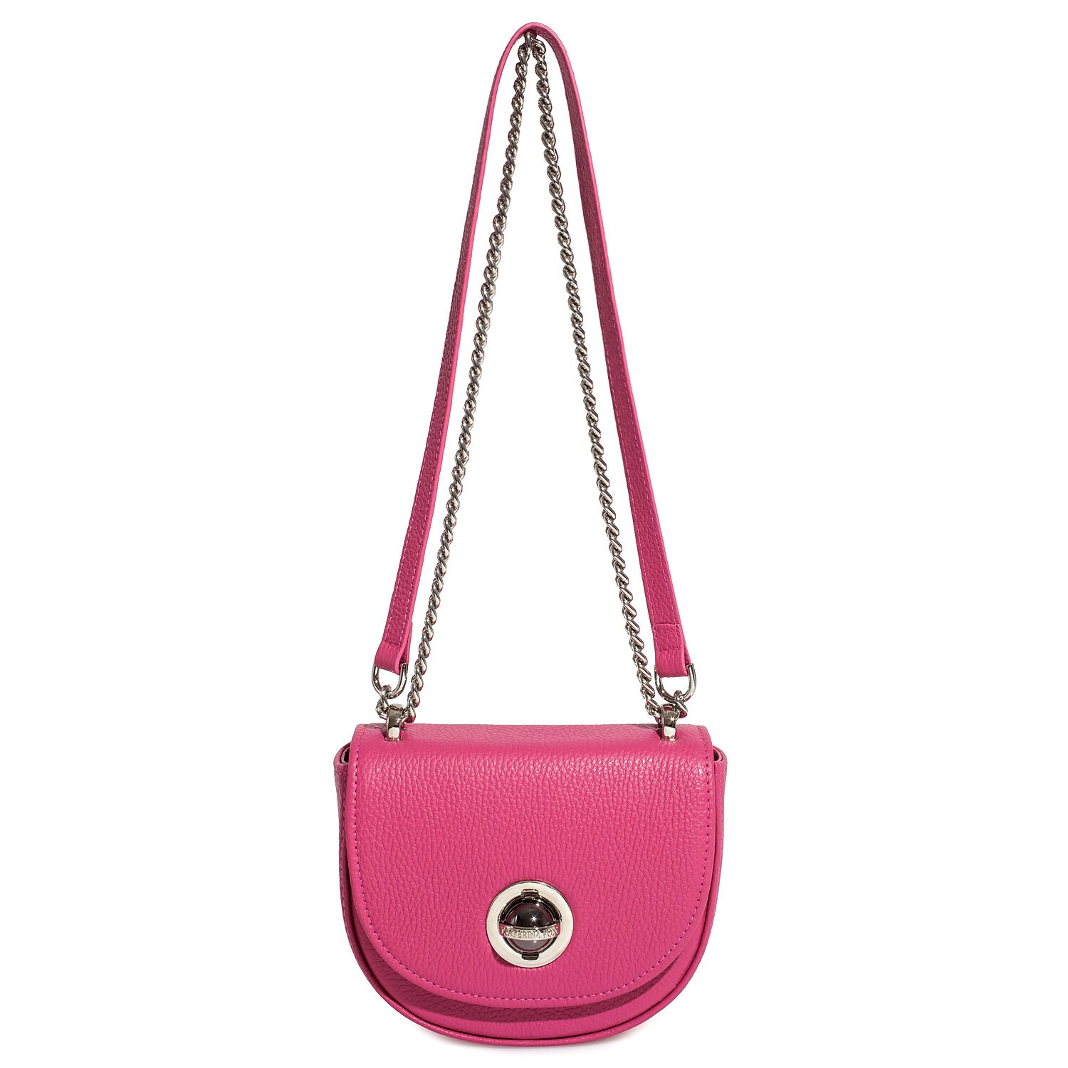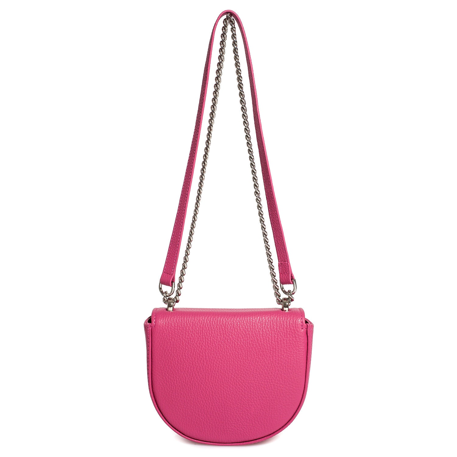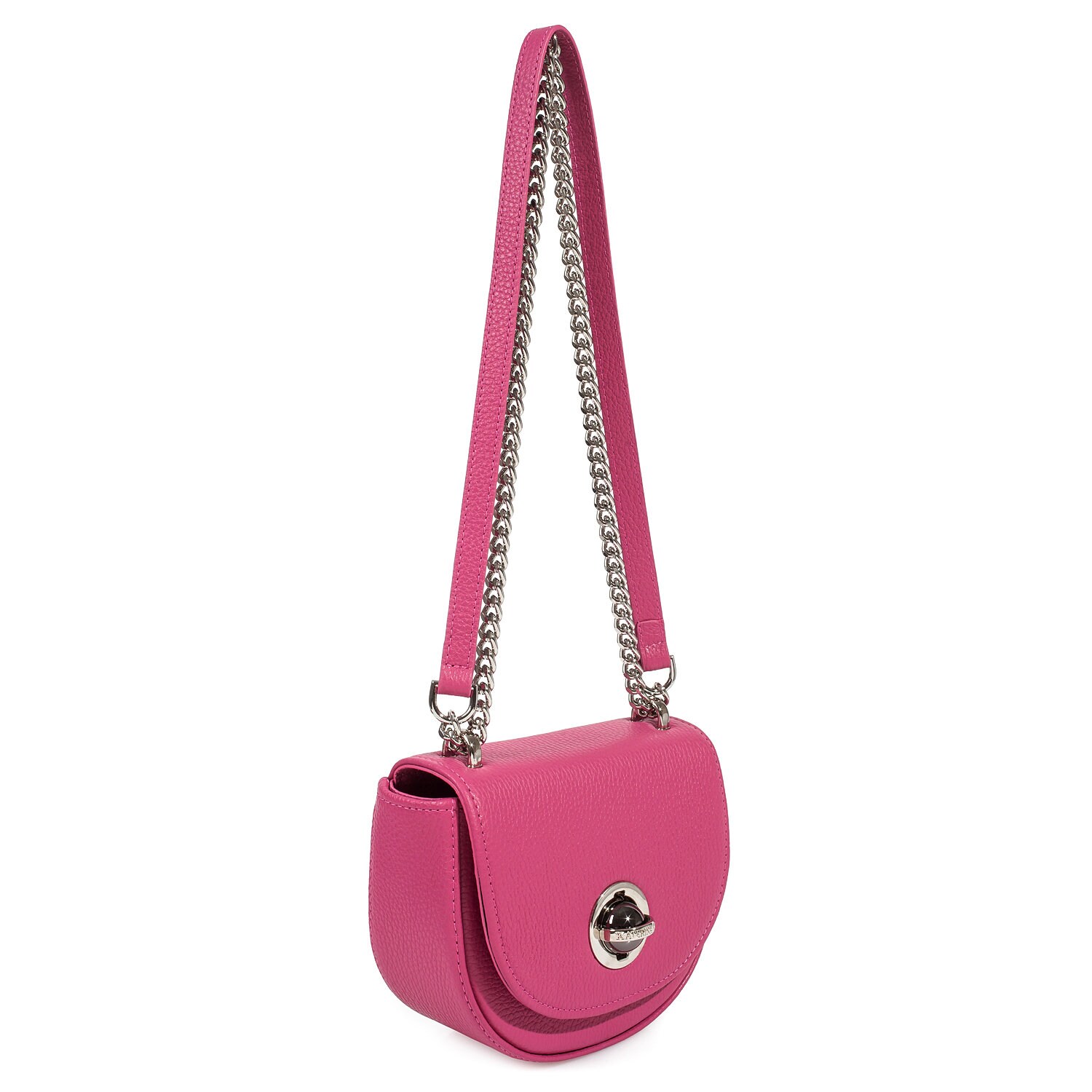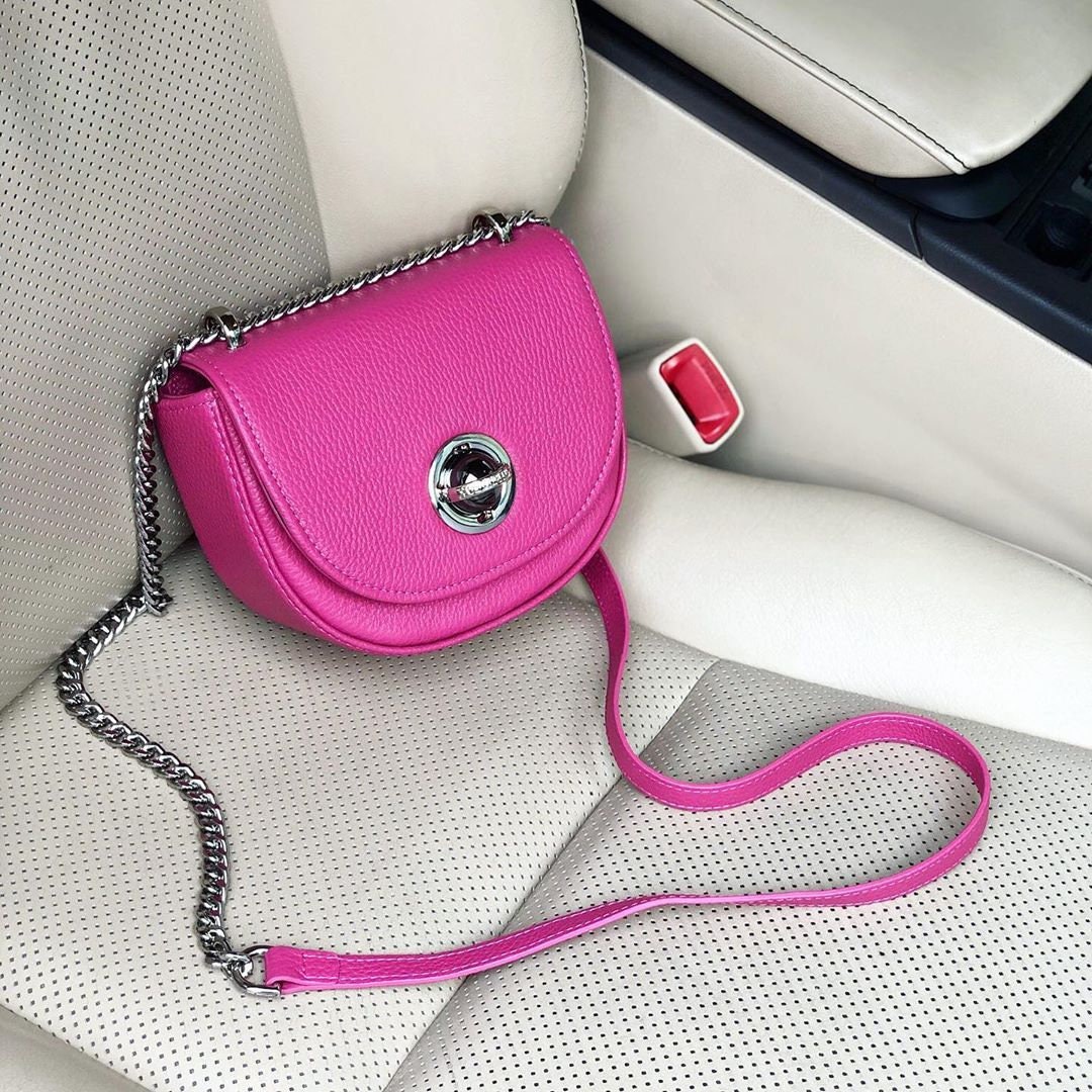 Fuchsia genuine leather woman shoulder bag from ukrainian designer Katerina Fox. Fashionable and elegant modern bag KF for bright girls and women. This bag is able to attract attention and highlight your exquisite taste. The internal space of a bag is equipped with one spacious compartment and one patch-pocket. The bag is closed with a clasp. There is a long handle that allows you to wear the bag on the shoulder. The kit also includes a storage bag.