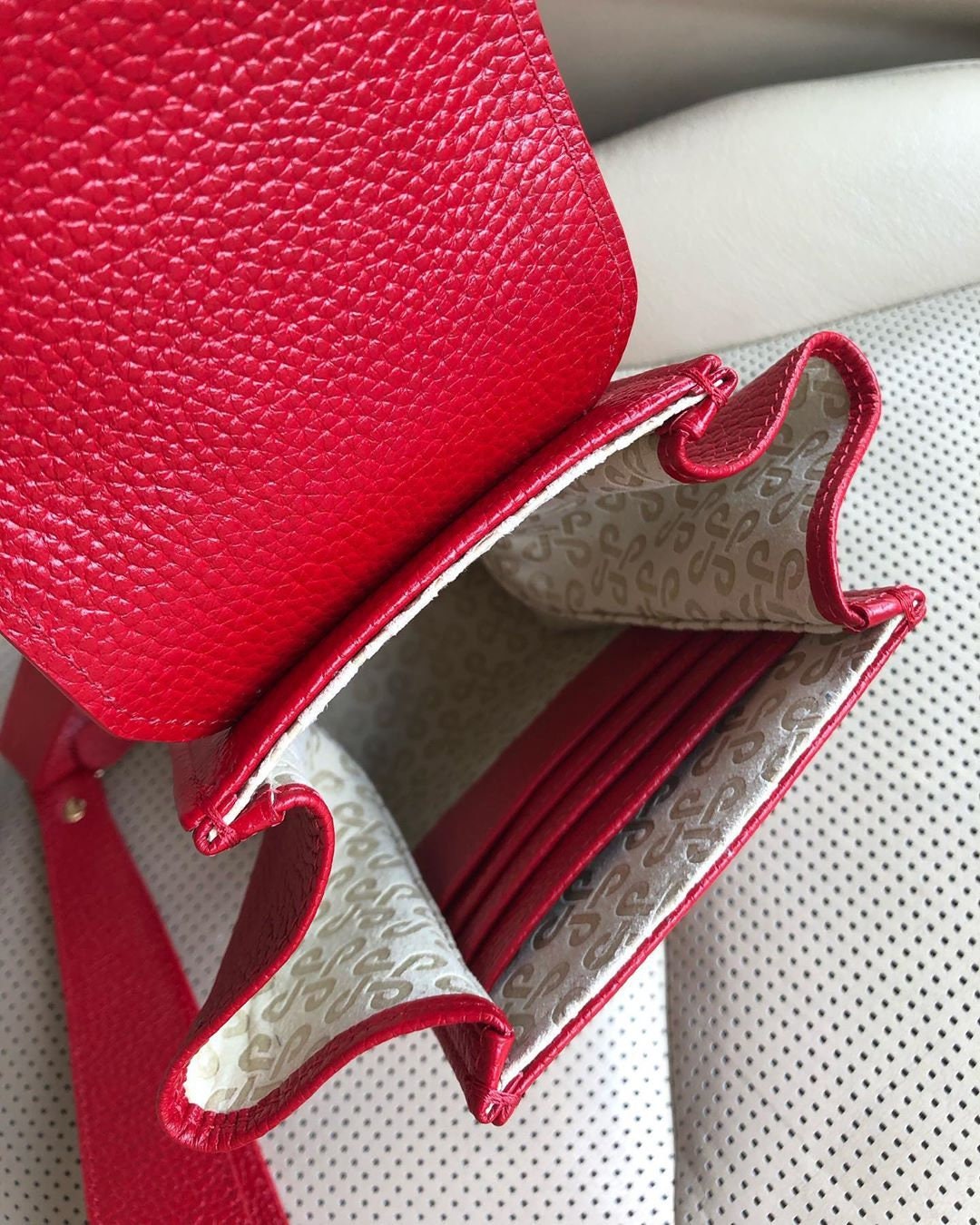 Red genuine leather woman crossbody bag from ukrainian designer Katerina Fox. Fashionable and elegant modern bag KF for bright girls and women. This bag is able to attract attention and highlight your exquisite taste. All accessories for Katerina Fox bags makes the same factory as for Michael §¬ors, Calvin Klein, DKNY and other famous brands.The internal space of a bag is equipped with one spacious compartment, four patch pockets for cards. The bag is closed on the button-magnet. The bag has a short removable handle on wrist.The length of the strap is adjustable. The kit also includes a storage bag.