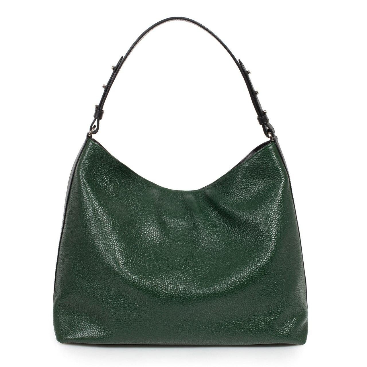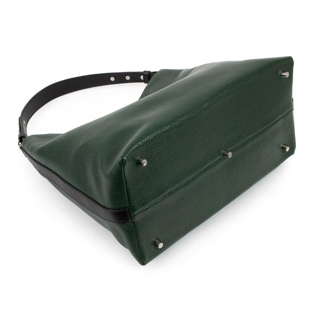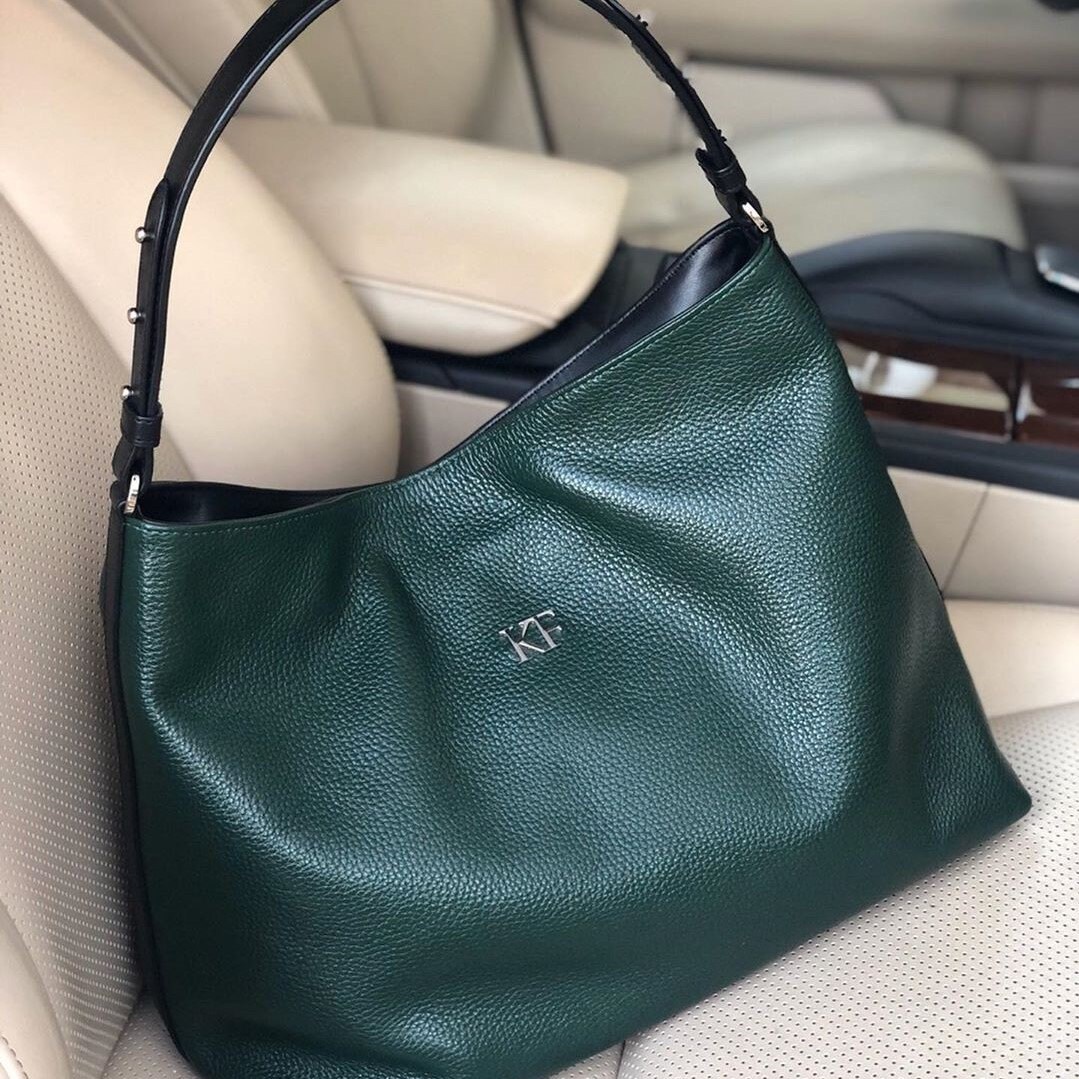 Dark green genuine leather hobo handbag from ukrainian designer Katerina Fox. Roomy, comfortable bag has sturdy leather handles . All hardware what we use is good quality,reliable and durable. The inner space of the bag is arranged in a way: one spacious office, two patch pockets and one zipper pocket. Bag closes with a zipper. The kit also comes with a bag for storage. This model looks very solid and stylish!