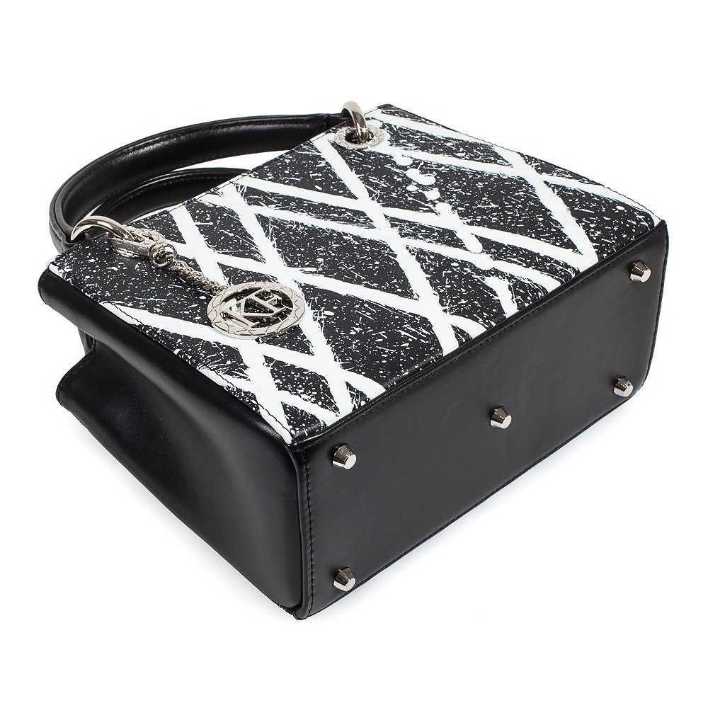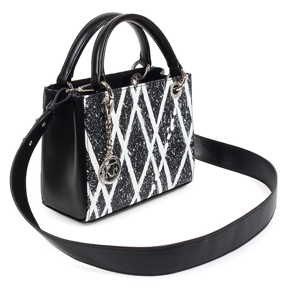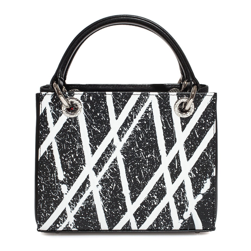 Leather Top Handle Bag, Black-white Leather Handbag Top Handle, Women's Leather Bag KF-3901